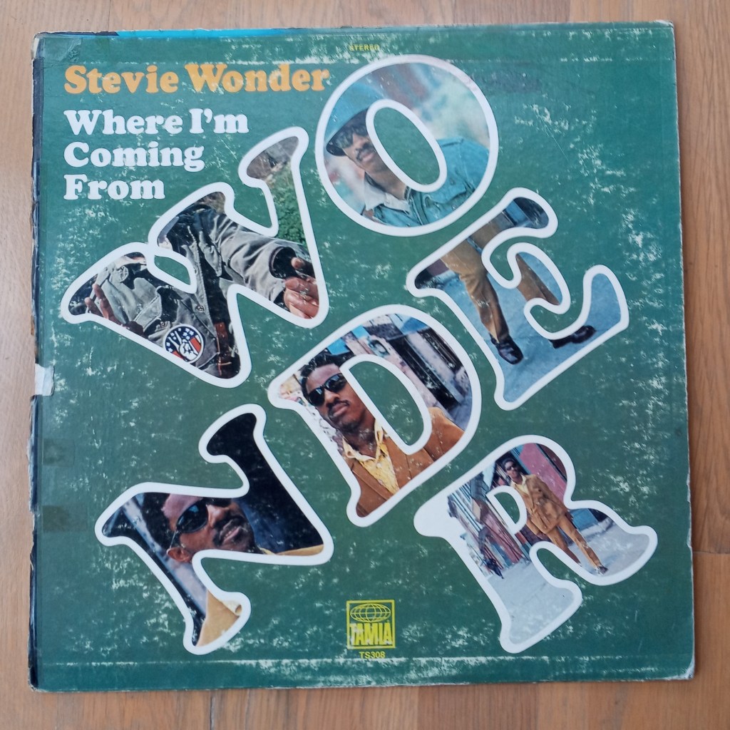 Well, for that I have to thank Stevie Wonder–and maybe a bit of divine intervention. When I was around ten years old I stumbled across a discount record bin at Payless department store. I’d recently set up my brother’s old Zenith “Stereophonic” record player so I could listen to my dad’s Tijuana Brass record, but I was on the lookout for something more, something of my own. Thumbing through the discs, I came across Stevie Wonder’s 1971 album, Where I’m Coming From. I had no idea who this Wonder guy was, but he had a cool name, and the cover seemed the antithesis of a Tijuana Brass album. So, I asked my mom if she could buy it for me.